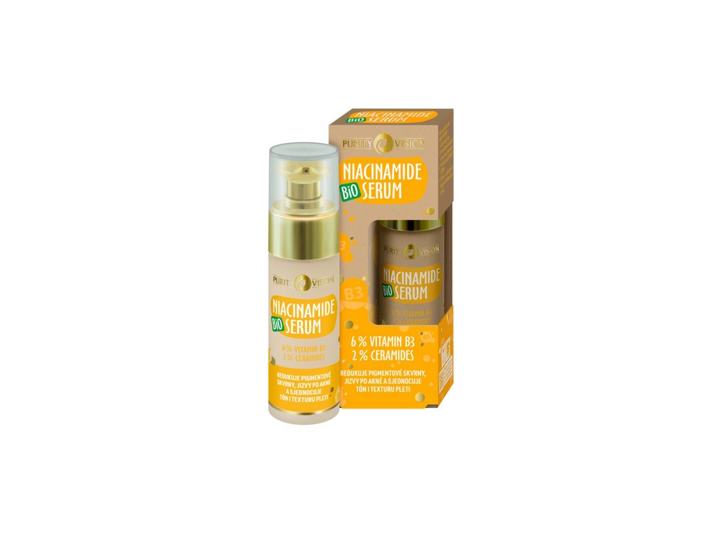 Objevte multifunkčního pomocníka pro sjednocený tón, zdravý vzhled a dlouhodobě vyváženou pleť – Bio Niacinamide sérum. Díky vysokému podílu niacinamidu (6 %) a posilujícím ceramidům (2 %) je sérum ideálním doplňkem vaši skincare pro podporu redukce pigmentových skvrn, zarudnutí i jizviček po akné. Pomáhá zjemnit strukturu pleti, rozjasňuje mdlou pokožku a zároveň posiluje její přirozenou ochrannou bariéru.
