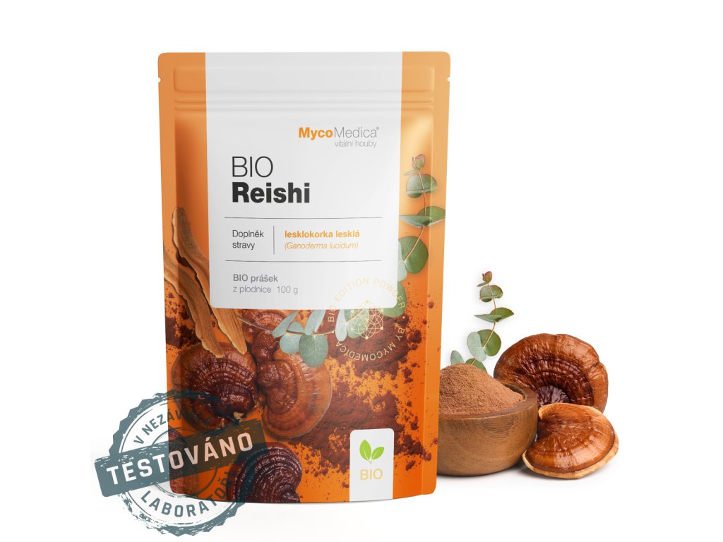 Obsah balení: 100g BIO prášku z plodnice Ganoderma lucidum (biomasa/powder)