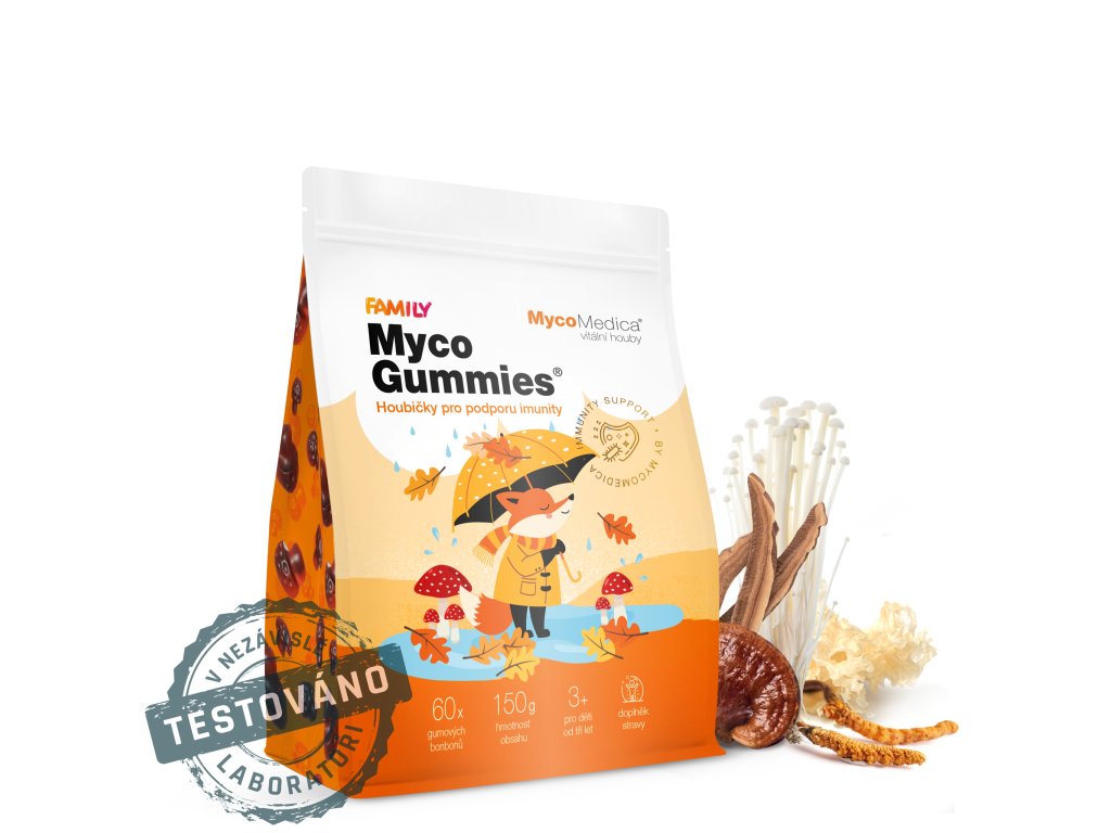MycoGummies obsahují vitální houby, podporují imunitu a obranyschopnost a jsou vhodné i pro děti. Pokud se vaše ratolesti nad vitamíny ošklíbají a nechtějí je polykat, tady to bude úplně jinak. Naši MycoGummies mají totiž tvar malých houbiček, který děti bude bavit, a navíc je slupnou jako malinu. A bez cukru.