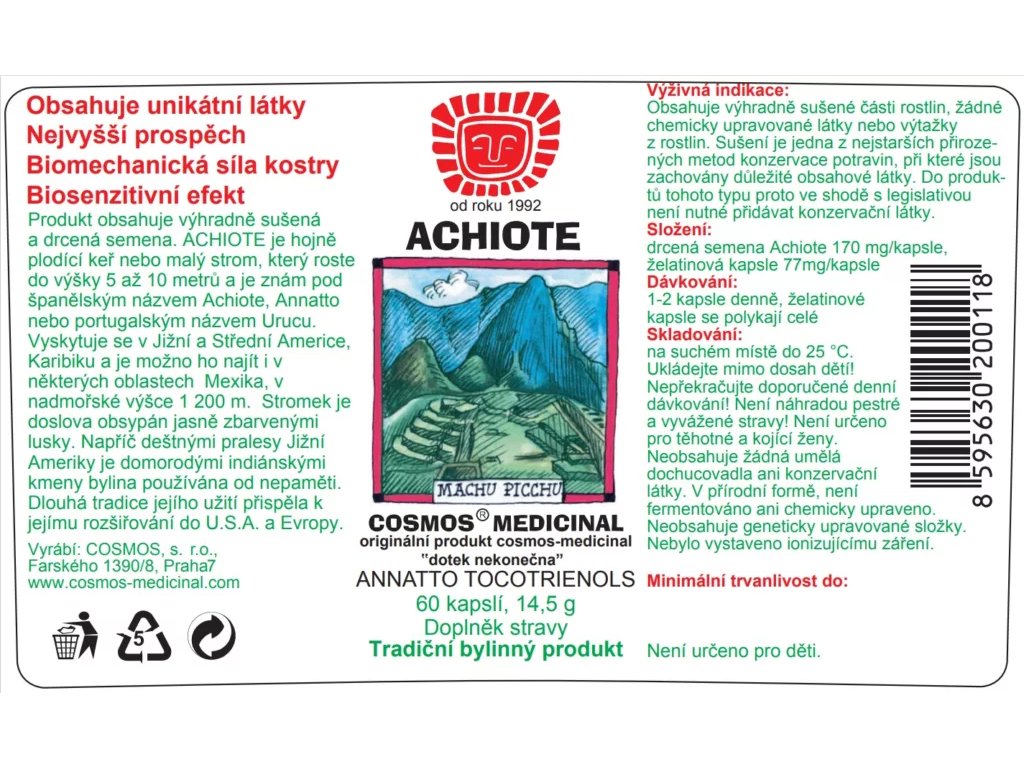 Produkt obsahuje výhradně sušená a mletá semena. ACHIOTE je hojně plodící keř nebo malý strom, který roste do výšky 5 až 10 metrů a je znám pod španělským názvem Achiote nebo portugalským názvem Urucu. Vyskytuje se v Jižní a Střední Americe, v Karibiku a je možno ho najít i v některých oblastech Mexika, v nadmořské výšce 1 200 m. Stromek je doslova obsypán jasně zbarvenými lusky. Napříč deštnými pralesy Jižní Ameriky je domorodými indiánskými kmeny bylina používána od nepaměti. Dlouhá tradice jejího užití přispěla k jejímu rozšiřování do U.S.A. a Evropy.