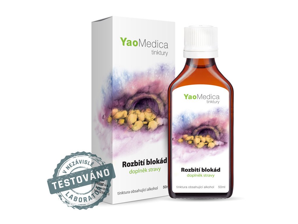 Tinktura Rozbití blokád uvolňuje Xue Yu (krevní stáze) v podbřišku. Zároveň oživuje Xue (krev) a rozbíjí Zhen Jia (fixní břišní masy). Díky pivoňce navádí působení do podbřišku. Tento problém mívá původní příčinu v Gan Yu (stagnaci Jater), což souvisí se stresem.