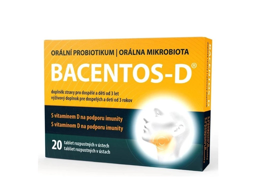 Přípravek BACENTOS-D® orální mikroflóra 20 tablet je registrovaný jako doplněk stravy.